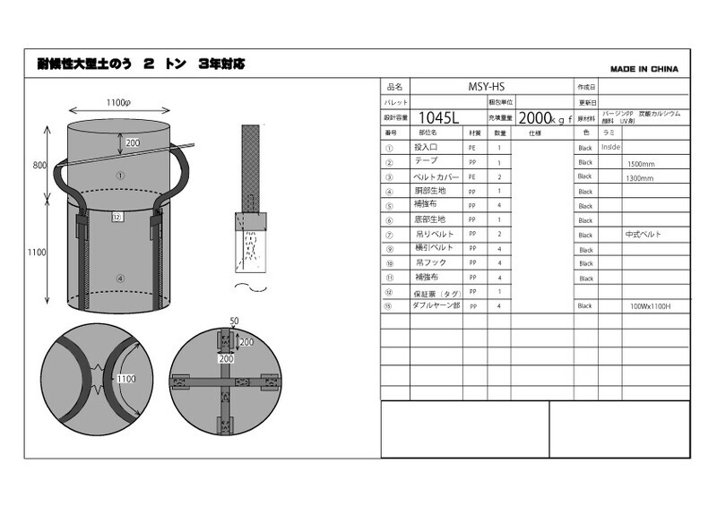 耐候性フレコンバッグ 3年耐侯 2tタイプ耐候性フレコンバッグ