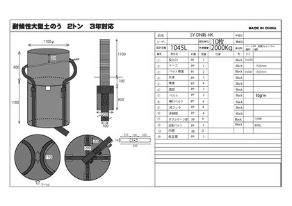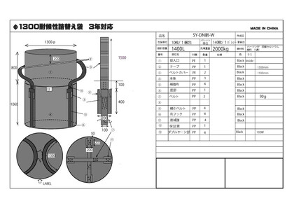耐候性フレコンバッグ 3年耐侯 2t 1400リットルタイプ